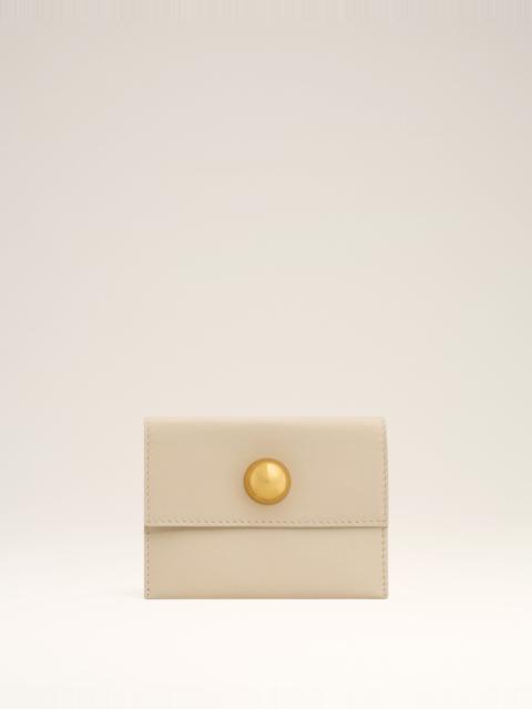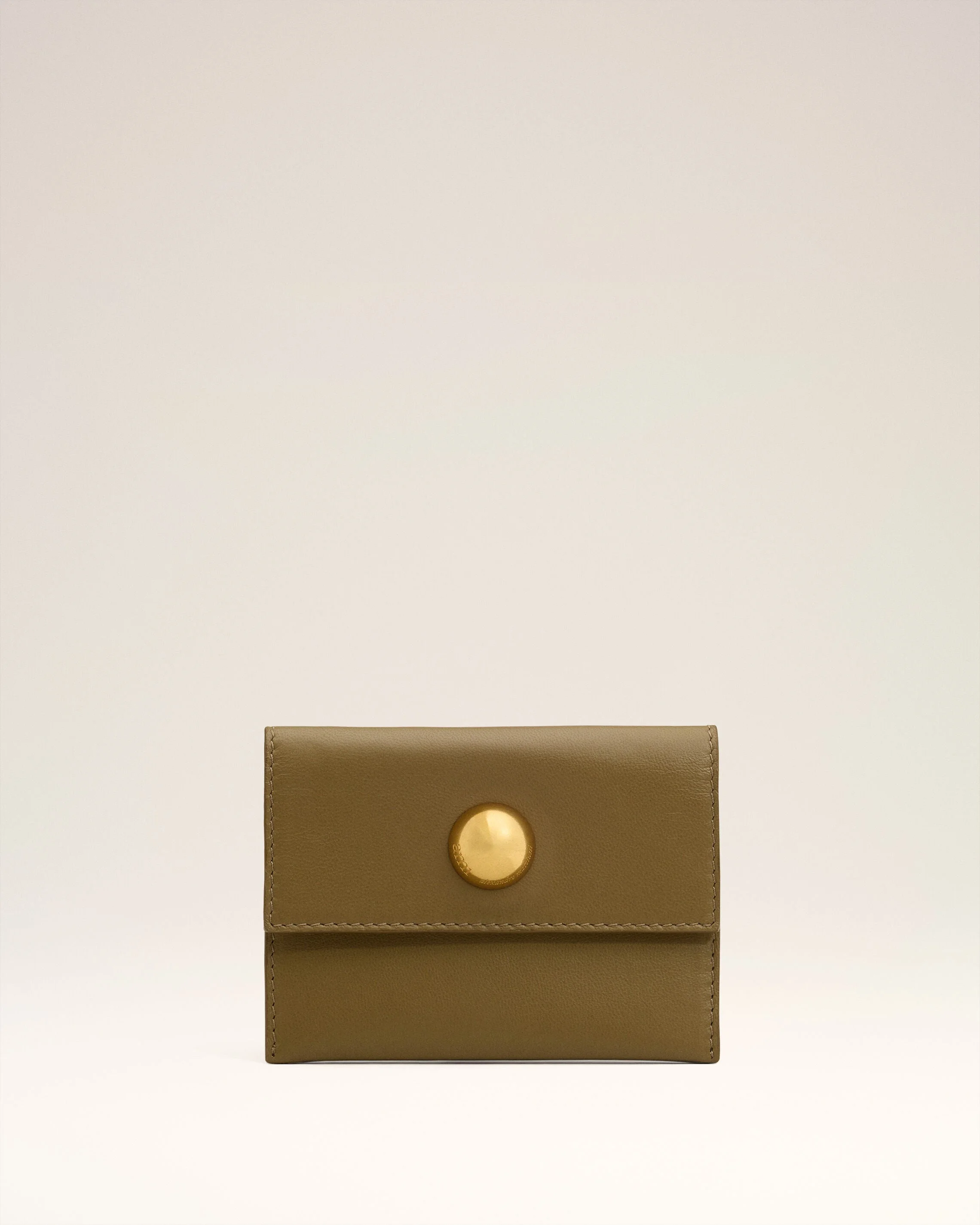 Carrousel card holder in smooth leather. Leather lining Domed metal stud with engraved "ami alexandre mattiussi" logo One main compartment, snap button fastening Metal hardware in vibrated brass color Size: 12x9 cm Made in Spain (with love) REF: USL005.AL0103.350 SIZE & FIT Size: 12x9 cm COMPOSITION & CARE GUIDE 100% Calfskin Our leathergoods are made from delicate materials. To keep the original aspect of the leather as long as possible, please avoid contact with abrasive and oily substances. Make sure not to expose them at the direct light for too long and to wipe them with a soft and dry cloth when wet. To avoid deformations, insure to not overload them. Keep them in their dust bag and safe from humidity.