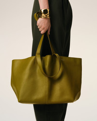 Midi tote bag in smooth leather. Signature stripes on the inside patched pocket and on the removable bottom Leather tie with a hook ring, fixed inside the bag Double handles, shoulder or hand carry Metal hardware in vibrated silver color Size: 35x30x18.5 cm, length at the top 59 cm Made in Spain (with love) REF: ULL025.AL0090.374 SIZE & FIT Size: 35x30x18.5 cm, length at the top 59 cm COMPOSITION & CARE GUIDE 100% Cow Leather Our leathergoods are made from delicate materials. To keep the original aspect of the leather as long as possible, please avoid contact with abrasive and oily substances. Make sure not to expose them at the direct light for too long and to wipe them with a soft and dry cloth when wet. To avoid deformations, insure to not overload them. Keep them in their dust bag and safe from humidity.