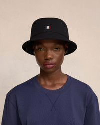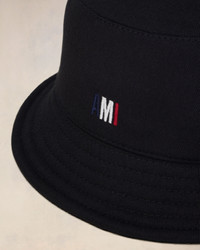 Bucket hat in cotton gabardine. "AMI" tricolor front embroidery Cotton gabardine lining Made in Bulgaria (with love) REF : SPUHA251.AW0006.001 SIZE & FIT Fits true to size. Take your normal size. COMPOSITION & CARE GUIDE 95% Cotton, 5% Polyester Chlorine prohibited Do not tumble dry Dry clean possible Do not iron Hand wash low temperature