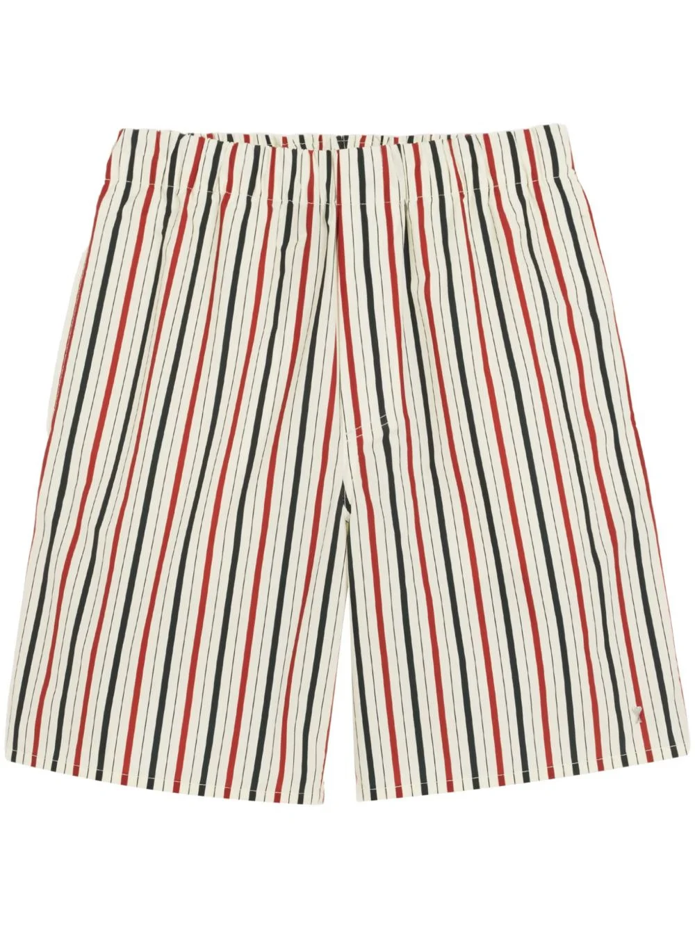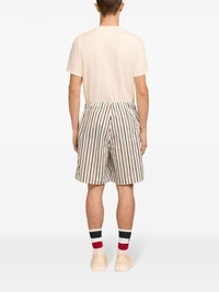 La Plage Ami printed mini shorts Highlights - Cream white - Signature ami de coeur monogram motif - Vertical stripe print - Elasticated waistband - Two side inset pockets - Rear patch pocket - Straight hem - When buying this unisex item, keep in mind that it is graded in standard men's sizing. Imported Composition Polyester 100% Washing instructions Read Manufacturer Guidelines