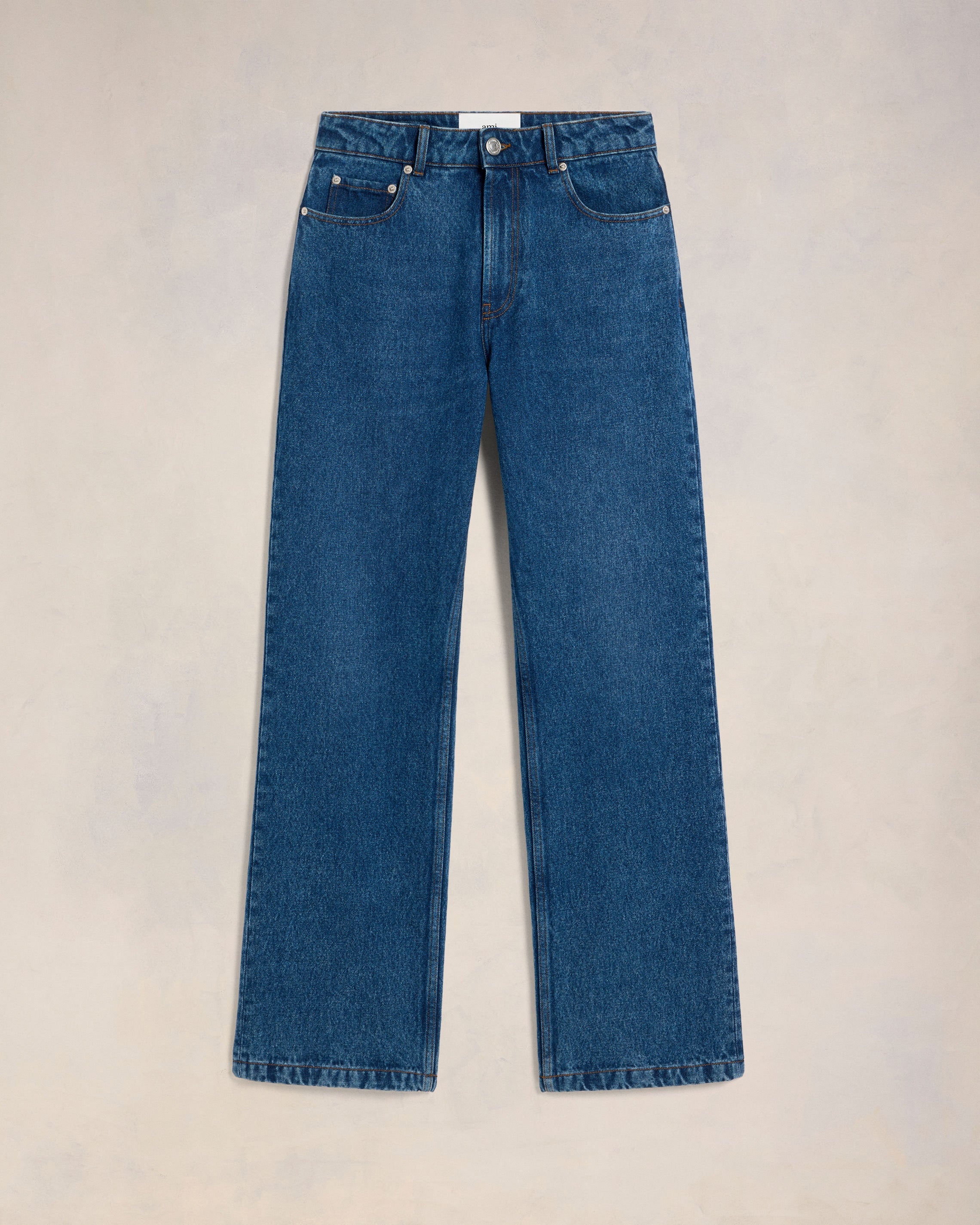 Large fit jeans in flowers jacquard denim. Large fit 25 cm bottom leg width (size 26) Classic waist Large leg 5 pockets Zipped fly Metal studs and buttons in nickel color "ami alexandre mattiussi" patch on the back Tobacco topstitches Made in Portugal (with love) REF : FTR450.DE0031.480 SIZE & FIT Fits true to size. Take your normal size. Model is 1m78 / 5'10" and is wearing a size 26. COMPOSITION & CARE GUIDE 100% Cotton Machine wash at 30°C Chlorine prohibited Do not tumble dry Line dry in shade Medium iron Dry clean possible