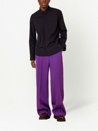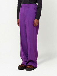 wide-leg tailored trousers Distinctive due to their purple hue, these trousers embody AMI Paris’ polished yet modern aesthetic. Crafted from wool, the pair falls to a wide leg that adds to the charismatic look. Highlights - Purple - Wool - Belt loops - Concealed front fastening - Two side inset pockets - Two rear button-fastening pockets - When buying this unisex item, keep in mind that it is graded in standard men's sizing. Imported Composition Wool 100% SIZE & FIT Model measurements Height 5 ft 10 in(1.78 m) Bust/Chest 33.46 in(85 cm) Hips 36.22 in(92 cm) Waist 23.22 in(59 cm) FittingInformation This piece is unisex. Please take care when selecting your size Designed for a slim fit for men and a loose fit for women Made with a mid-weight fabric Washing instructions Dry Clean Only