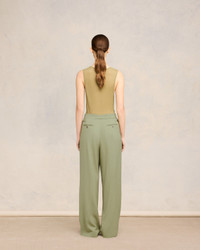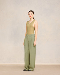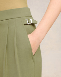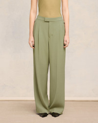 Wide fit trousers in wool and viscose twill. Wide fit 28 cm bottom leg width (size 36) Front lining to knees Front pleats Buttoned fly ami rocap waistband V detail on the back Back buttoned pockets Metal buckles on sides Made in Moldova (with love) REF : FTR419.VI0007.351 SIZE & FIT This item is designed to be worn lose. Take your normal size. COMPOSITION & CARE GUIDE 55% Viscose, 45% New Wool Do not wash Chlorine prohibited Do not tumble dry Cool iron Dry clean petroleum solvent only on a gentle process