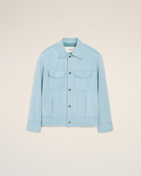 Jacket in goat suede leather. Unisex product Unlined Metal denim press buttons engraved "ami paris" Invisible snap buttons engraved "ami paris" at chest pockets Denim studs engraved "ami paris" at cuffs "ami alexandre mattiussi" patch on the back 68,5 cm center back length (size M) 66 cm center back length (size XS) Made in Turkiye (with love) REF: UJK839.LH0059.4506 SIZE & FIT This style is unisex. For man, take your normal size. For woman, take one size down than your usual size. Man model is 186 cm / 6"1 and is wearing a size M. Woman model is 178 cm / 5"10 and is wearing a size XS. COMPOSITION & CARE GUIDE Main Material : 100% Goat Leather Pocket Lining : 100% Cotton Do not wash Chlorine prohibited Do not tumble dry Do not iron Do not dry clean Dry clean by a leather specialist
