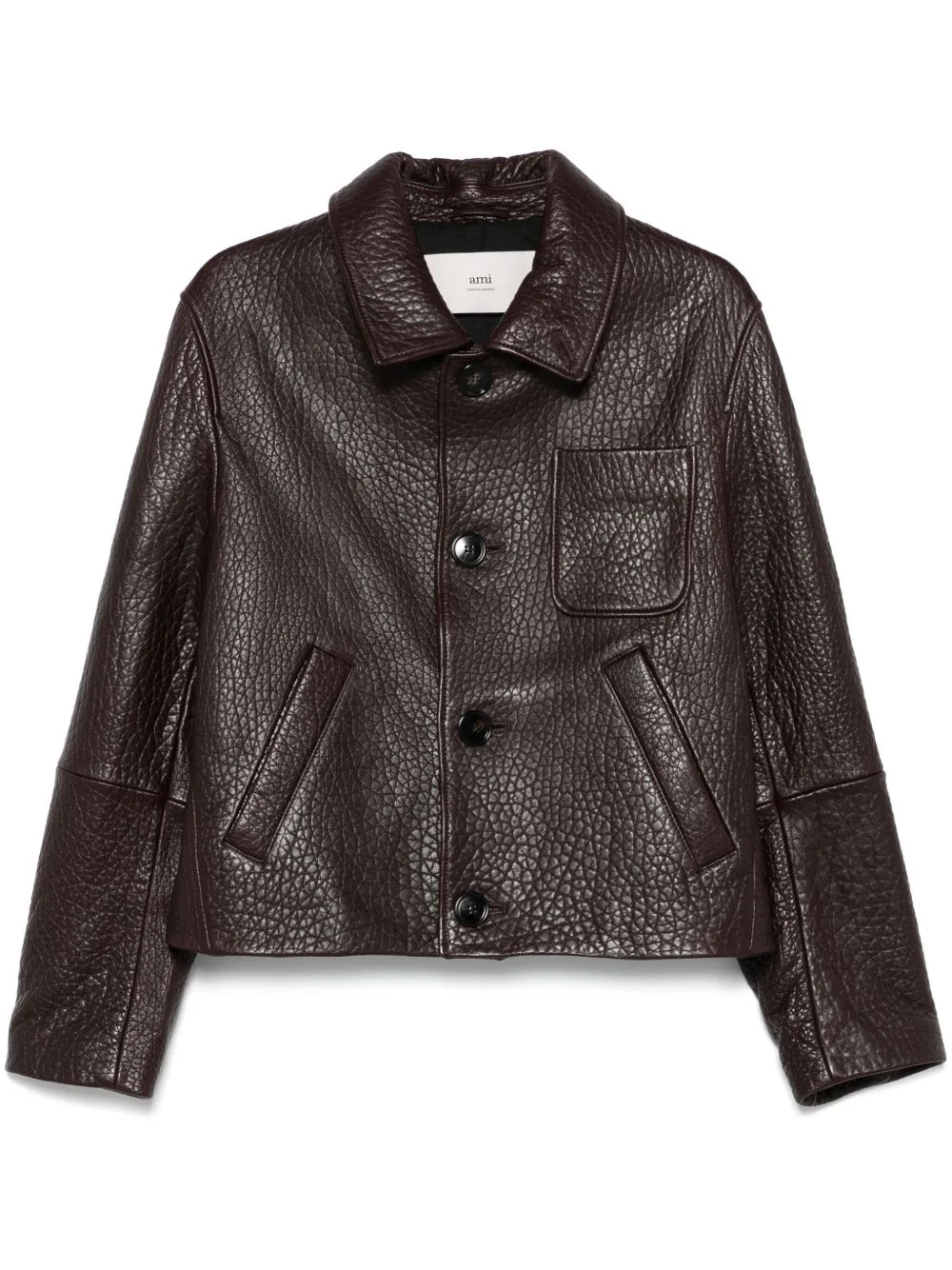 leather jacket Highlights - Havana brown - Front button fastening - Chest patch pocket - Two side welt pockets - Long sleeves Imported Composition Lining: Cotton 50%, Polyester 50% Outer: Calf Leather 100% SIZE & FIT Model measurements Height 5 ft 10 in(1.77 m) Bust/Chest 31.1 in(79 cm) Hips 34.64 in(88 cm) Waist 24.01 in(61 cm) FittingInformation Designed for a relaxed fit, this piece allows for comfort and movement when worn Soft leather has a supple and smooth construction offering some flexibility