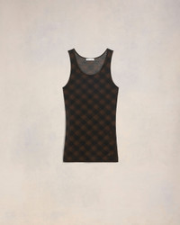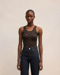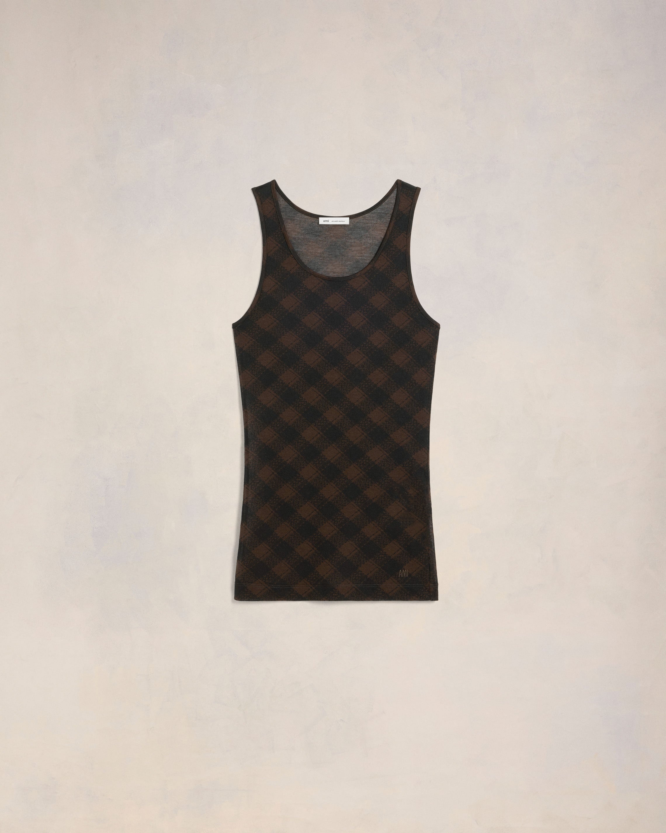 Long tanktop in fluid printed jersey. 60 cm center back length (size S) Tonal "AMI" embroidery on the front bottom of the style Exclusive check pattern developed by AMI Made in Portugal (with love) REF : FTK128.JE0095.0022 SIZE & FIT This item is designed for a close fit. Take the next size up for a semi-fitted cut. Model is 1m78 / 5'10" and is wearing a size XS. COMPOSITION & CARE GUIDE 70% Cotton, 30% Polyamide Chlorine prohibited Machine wash at 30°C gentle Do not tumble dry Cool iron Dry clean gentle