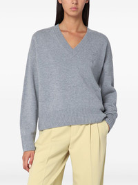 logo-embroidered V-neck sweater Highlights - Grey - V-neck - Logo embroidery - Long sleeves - Ribbed hem Made in Italy Composition Wool 90%, Cashmere 10% Washing instructions Read Manufacturer Guidelines