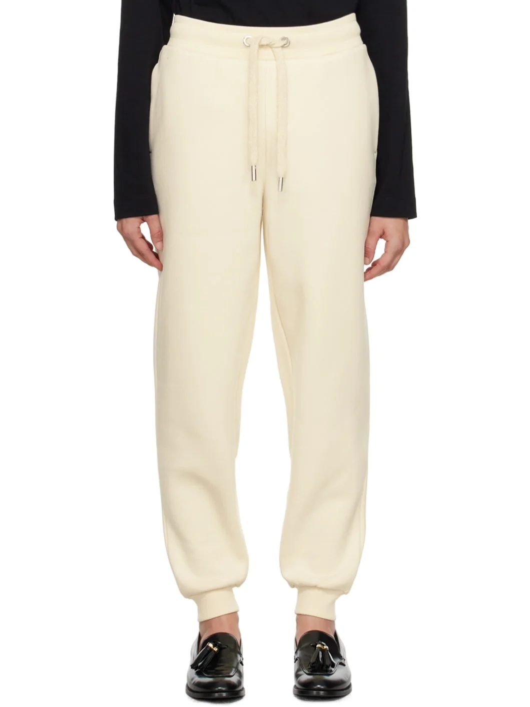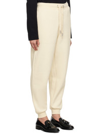 Heavyweight brushed organic cotton- and recycled polyester-blend fleece lounge pants. · Drawstring at rib knit elasticized waistband · Three-pocket styling · Rib knit cuffs · Logo patch at back pocket · Logo-engraved silver-tone hardware Supplier color: Ivory Body: 66% organic cotton, 34% recycled polyester. Trim: 99% organic cotton, 1% elastane. Made in Portugal 232482F086000