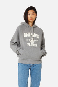 Product Description logo-print hoodie from AMI Paris featuring heather grey, organic cotton, logo print at the chest, ribbed cuffs, logo print at the chest, long sleeves, straight hem and drawstring hood. Conscious: This item is made from at least 50% organic materials.