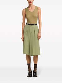 knee-length tailored shorts Highlights - Olive green - Virgin wool blend - High-waisted - Belt loops - Concealed fly and button fastening - Pressed crease - Two rear flap pockets - Knee-length Imported Composition Viscose 55%, Virgin Wool 45% SIZE & FIT Measurement INSIDE LEG 13.38 in(34 cm) FRONT RISE 14.17 in(36 cm) WAIST 25.98 in(66 cm) HIPS 37 in(94 cm) Washing instructions Read Manufacturer Guidelines