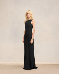 Long dress with bias cut in viscose and acetate mat crepe. 158 cm center back length (size 36) Two bias cuts on dress Invisible zip at back The dress is longer on the back Made in Bulgaria (with love) REF : FDR219.AC0009.001 SIZE & FIT This item is designed for a close fit. Take the next size up for a semi-fitted cut. Model is 1m76 / 5'8" and is wearing a size 36. COMPOSITION & CARE GUIDE 73% Acetate, 27% Viscose Do not wash Chlorine prohibited Do not tumble dry Cool iron Dry clean petroleum solvent only on a gentle process