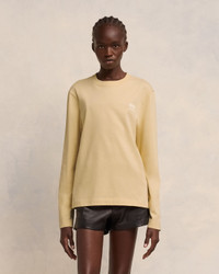 Long-sleeved t-shirt in heavy organic cotton jersey. Classic fit Unisex product 65 cm center back length (size XS) 69 cm center back length (size M) Ami Alexandre Mattiussi transfer print Tonal Ami de Coeur embroidery under back neckline Made in Portugal (with love) REF : UTS224.726.721 SIZE & FIT This style is unisex. For man, take your normal size. For woman, take one size down than your usual size. Man model is 1m87 / 6' ½" and is wearing a size M. Woman model is 1m77 / 5'9 1/2" and is wearing a size XS. COMPOSITION & CARE GUIDE 100% Organic Cotton Chlorine prohibited Do not tumble dry Do not dry clean Cool iron Machine wash at 30°C gentle