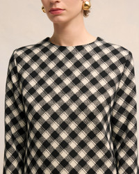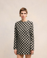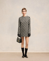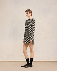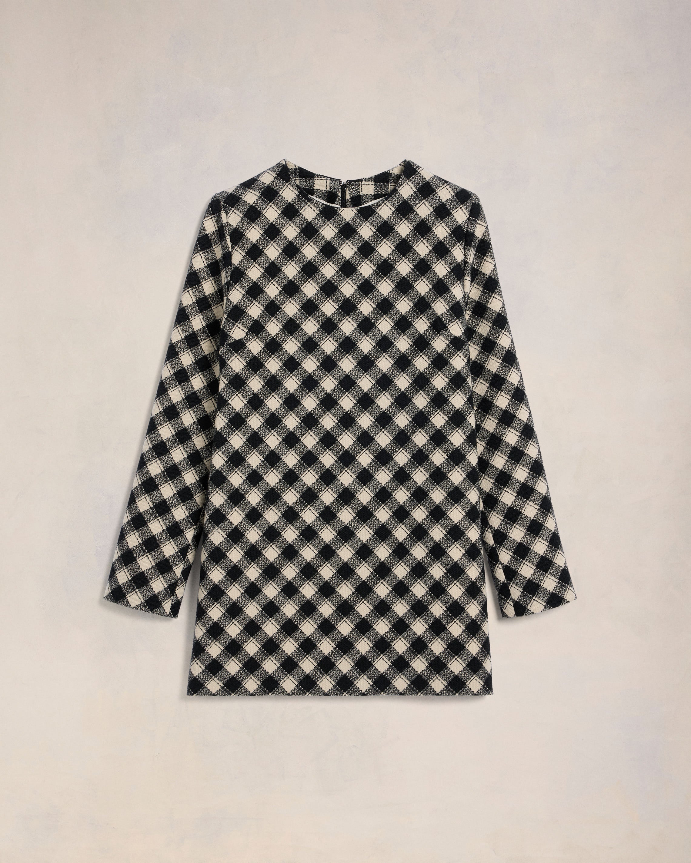 Short dress with long sleeves in check printed wool crepe. Straight fit 80 cm center back length (size 36) Fully lined Made in Bulgaria (with love) REF : FDR011.WO0002.012 SIZE & FIT Fits true to size. Take your normal size. Model is 1m78 / 5'10" and is wearing a size 36. COMPOSITION & CARE GUIDE 100% Wool Do not wash Chlorine prohibited Do not tumble dry Cool iron Dry clean petroleum solvent only on a gentle process