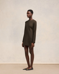Short dress with long sleeves in soft wool gabardine. Straight fit 80 cm center back length (size 36) Fully lined Made in Bulgaria (with love) REF : FDR011.WV0026.221 SIZE & FIT Fits true to size. Take your normal size. Model is 1m76 / 5'9" and is wearing a size 36. COMPOSITION & CARE GUIDE 100% New Wool Do not wash Chlorine prohibited Do not tumble dry Cool iron Dry clean petroleum solvent only on a gentle process