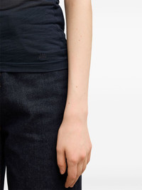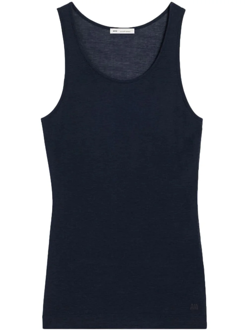 logo-embroidered cotton-blend top Highlights - Navy blue - Cotton blend - Semi-sheer construction - Embroidered logo to the front - Round neck - Sleeveless - Straight hem Imported Composition Cotton 70%, Polyamide 30%