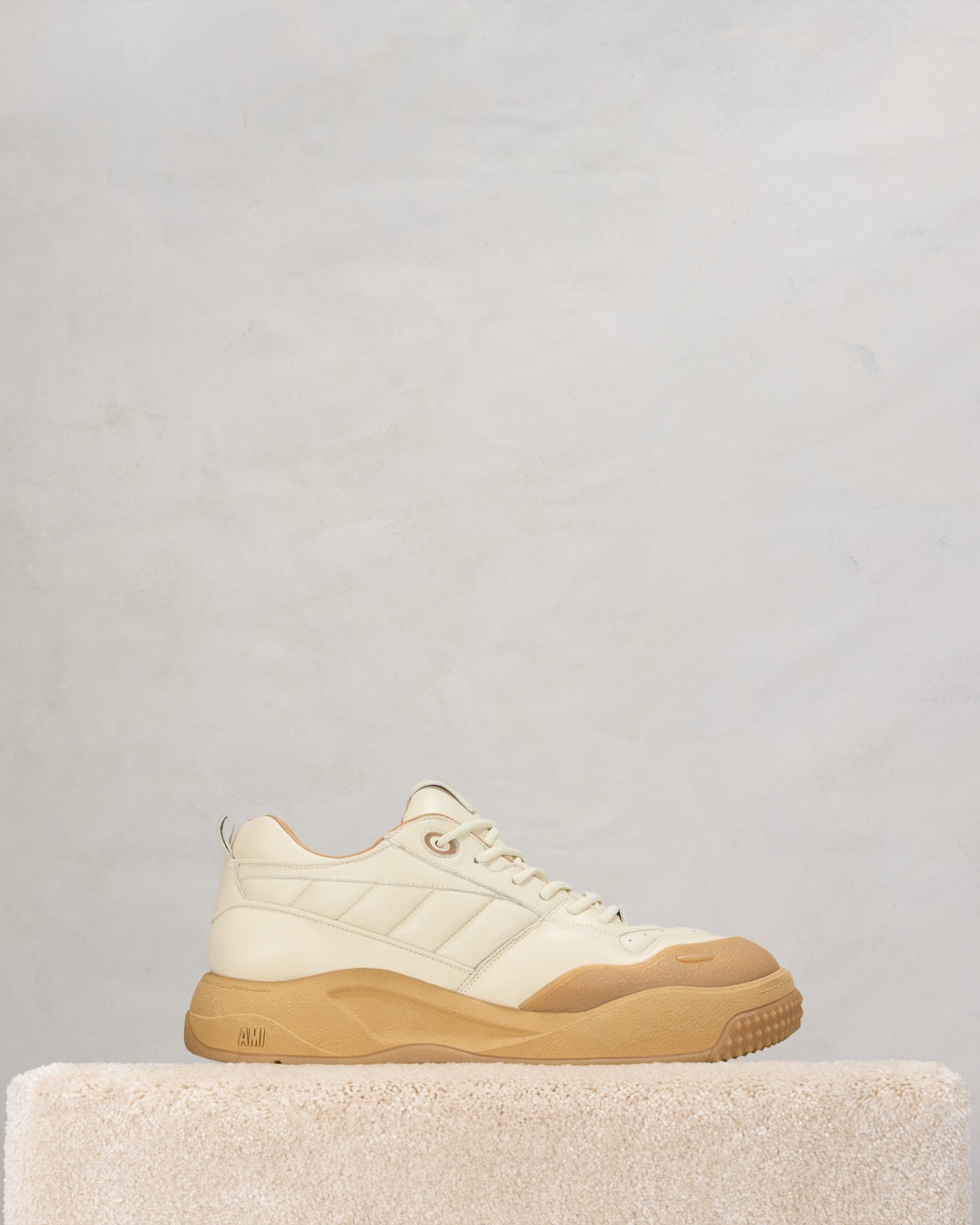 Low-top lace-up sneakers in smooth nappa leather. Embossed AMI logo at the back Leather embossed AMI PARIS logo on the tongue Printed Ami de Coeur logo on the insole Exclusive sole developed by Ami Paris Made in Portugal (with love) SIZE & FIT Fits true to size. Take your normal size. COMPOSITION & CARE GUIDE 100% Lamb Leather