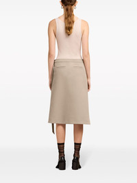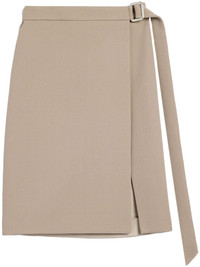 virgin wool wrap midi skirt Highlights - Beige - Virgin wool - Wrap design - High-waisted - Belted waist - Side slit - Below-knee length - Straight hem Imported Composition Virgin Wool 100% Washing instructions Read Manufacturer Guidelines