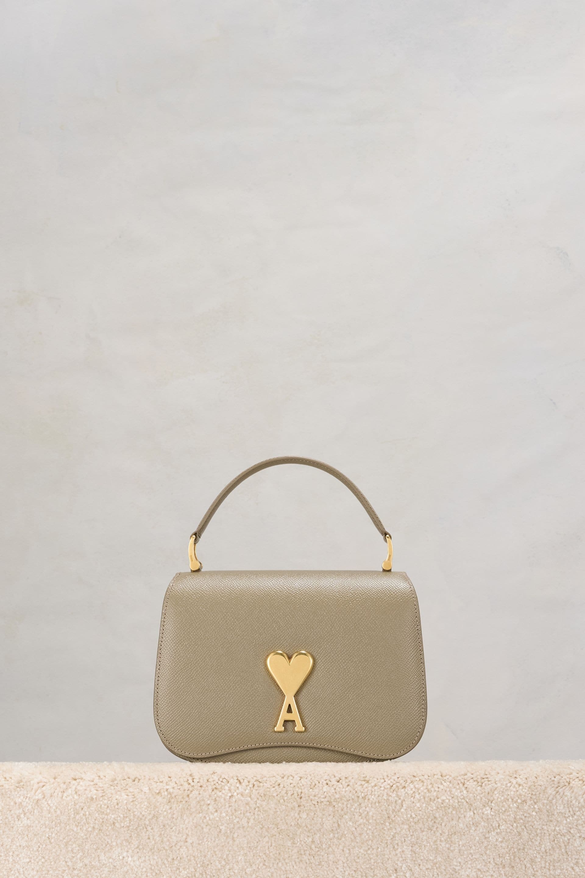 Product Description logo-plaque shoulder bag from AMI Paris featuring taupe brown, leather, grained texture, gold-tone logo plaque, leather strap, single flat top handle, front flap closure and main compartment. Mini Paris Paris Bag in grained leather. - Suede lambskin lining - Ami de Cœur clasp - One central compartment with a patched pocket and one front compartment - Adjustable leather strap, crossbody or shoulder carry - Metal hardware in vibrated brass color - Size: 19x13x4 cm - Made in Morocco (with love) REF ULL007.AL0036281 Size & Fit One size. Materials & Care Instructions 100% Cow Leather
