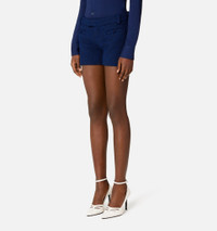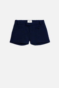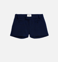Product Description tweed tailored shorts from AMI Paris featuring indigo blue, virgin wool blend, cotton blend, tweed, concealed side hook and zip fastening, two front welt pockets, belt loops, straight hem, thigh-length and tailored design. Shorts in wool cotton polyester boucle. - 28 cm ½ bottom width (size 36) - Fully lined - Welt pockets with covered buttons in the same fabric - Made in Bulgaria (with love) REF FSO103.WV0001491 Size & Fit Fits true to size. Take your normal size. Materials & Care Instructions Main Fabric: 45% Virgin Wool, 44% Polyester, 6% Cotton, 5% Polyamide. Lining: 50% Cotton, 50% Polyester. Do not wash Do not bleach Do not tumble dry Cool iron Dry clean gentle