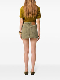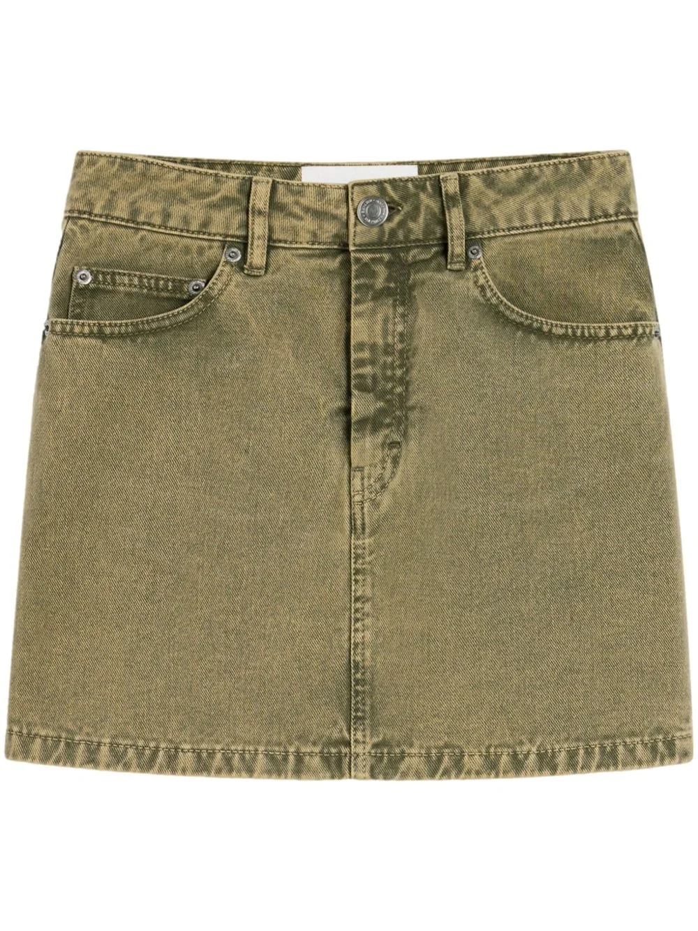 denim mini skirt Highlights - Moss green - Concealed fly and button fastening - Classic five pockets - Belt loops - Applique logo Imported Composition Cotton 100% Washing instructions Machine Wash