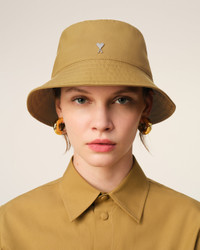 Bucket hat in nylon and cotton technical twill. Ami de Coeur metallic stud Cotton lining Water-repellent fabric Made in Bulgaria (with love) REF: UHA241.PA0007.202 SIZE & FIT Fits true to size. Take your normal size. COMPOSITION & CARE GUIDE 70% Polyamide, 30% Cotton Do not wash Chlorine prohibited Do not tumble dry Do not iron Dry clean possible