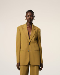 Semi-lined jacket in wool gabardine. Straight fit 75 cm center back length (size 36) Half lined Notch collar Two buttons single breasted Two double piped pockets One chest piped pocket Three inside pockets Buttoned bottom sleeves Centre back slit Horn buttons Made in Romania (with love) REF: FBV011.WV0067.202 SIZE & FIT Fits true to size. Take your normal size. Model is 1m77 / 5'10" and is wearing a size 36. COMPOSITION & CARE GUIDE 100% New Wool Do not wash Chlorine prohibited Do not tumble dry Cool iron Dry clean petroleum solvent only on a gentle process