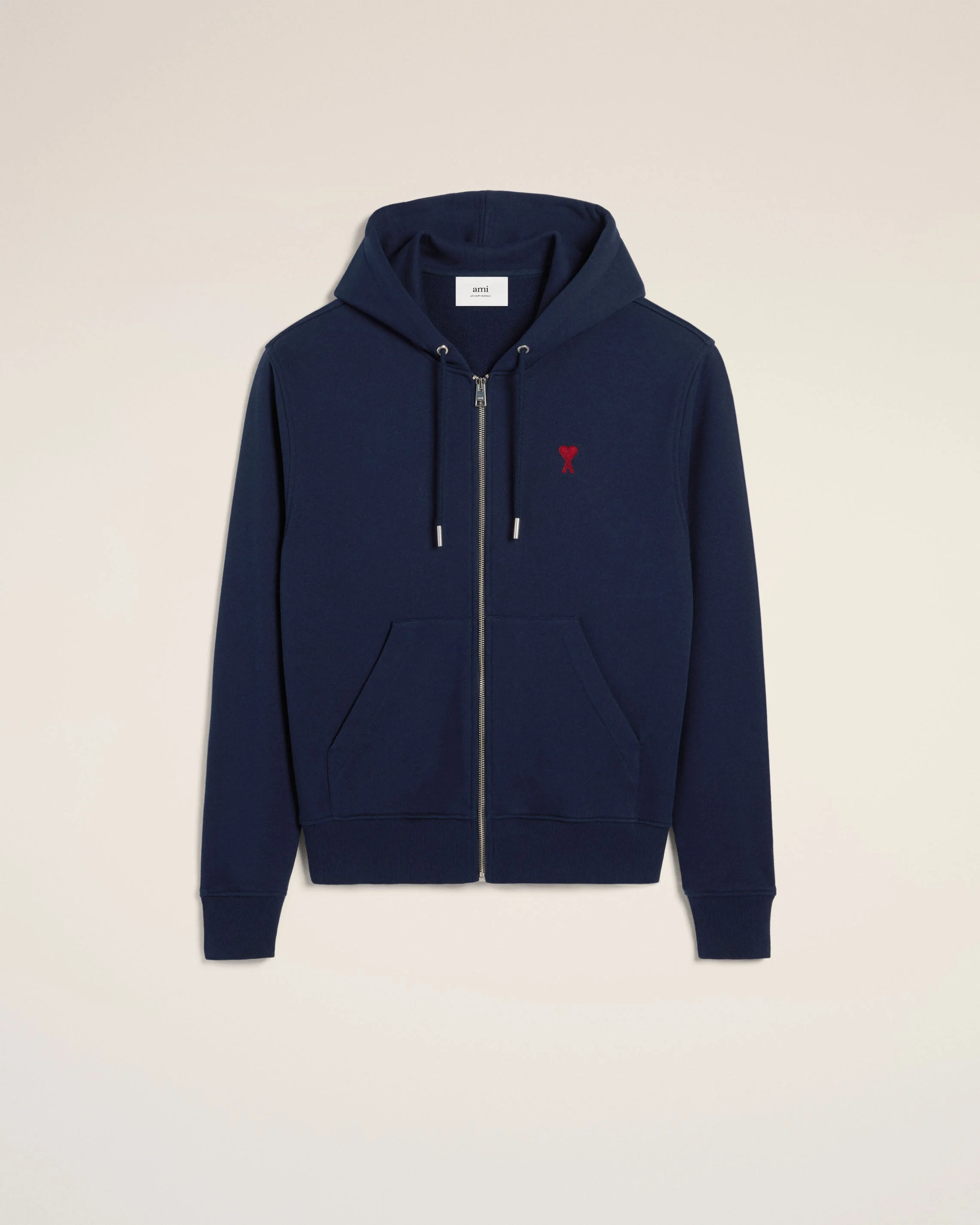 Zipped Ami de Coeur hoodie in loopback organic cotton fleece. Classic fit Unisex product 61 cm center back length (size XS) 69 cm center back length (size M) Red Ami de Coeur chest embroidery Tonal "AMI" embroidery under back neckline Nickel color metal ends and engraved eyelets Nickel color metal zipper Puller ami engraved Made in Portugal (with love) REF: BFUSW435.730.430 SIZE & FIT This style is unisex. For man, take your normal size. For woman, take one size down than your usual size. Man model is 1m83 / 6'0" and is wearing a size M. Woman model is 1m77 / 5'10" and is wearing a size XS. COMPOSITION & CARE GUIDE 100% Cotton Chlorine prohibited Machine wash at 30°C gentle Do not tumble dry Do not dry clean Cool iron