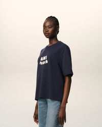 NAVY COTTON AMI PARIS PATCH T-SHIRT