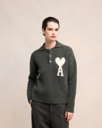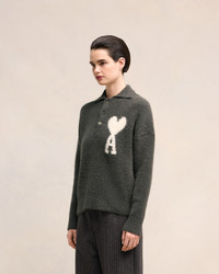 Polo in hairy alpaca knit. Unisex product Interlock stitch Fur stitch intarsia knitted off-white Ami de Coeur on the chest 62 cm center back length (size M) 56 cm center back length (size XS) Horn buttons Made in Portugal (with love) REF : UPL325.KN0032.061 SIZE & FIT This style is unisex. For man, take your normal size. For woman, take one size down than your usual size. Man model is 1m83 / 6'0" and is wearing a size M. Woman model is 1m78 / 5'10" and is wearing a size XS. COMPOSITION & CARE GUIDE 71% Alpaca, 22% Polyamide, 4% Wool, 3% Elastane Hand wash low temperature Chlorine prohibited Do not tumble dry Flat drying in the shade Cool iron Dry clean gentle