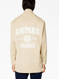 Product Description 709 VANILLE Natural (Veg)->Cotton Overshirt With Ami Paris Print from AMI Paris. Overshirt shirt in cotton gabardine with Ami Paris print. - Unisex product - 87 cm center back length (size M) - 84 cm center back length (size XS) - Unlined - Chest pocket - Ami PARIS FRANCE print on the back - Ami engraved corozo buttons - Made in Tunisia (with love) REF UJK220.CO0020709 Size & Fit This style is unisex. For man, take your normal size. For woman, take one size down than your usual size. Materials & Care Instructions 100% Cotton Machine wash at 30°C gentle Do not bleach, Do not tumble dry Do not iron Dry clean gentle