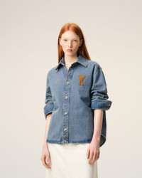 Overshirt in used indigo denim. Unisex product Denim snap buttons in nickel color Tobacco Ami de Coeur crochet patch on the chest Tobacco topstitches Made in Portugal (with love) REF: UJK897.DE0046.480 SIZE & FIT This style is unisex. For man, take your normal size. For woman, take one size down than your usual size. Woman model is 179 cm / 5"8 and is wearing a size XS. Man model is 188 cm / 6"1 and is wearing a size M. COMPOSITION & CARE GUIDE Main Material : 100% Cotton Machine Wash At 30°C Chlorine Prohibited Do Not Tumble Dry Medium Iron Dry Clean Possible Wash With Similar Colours Wash And Iron Inside Out
