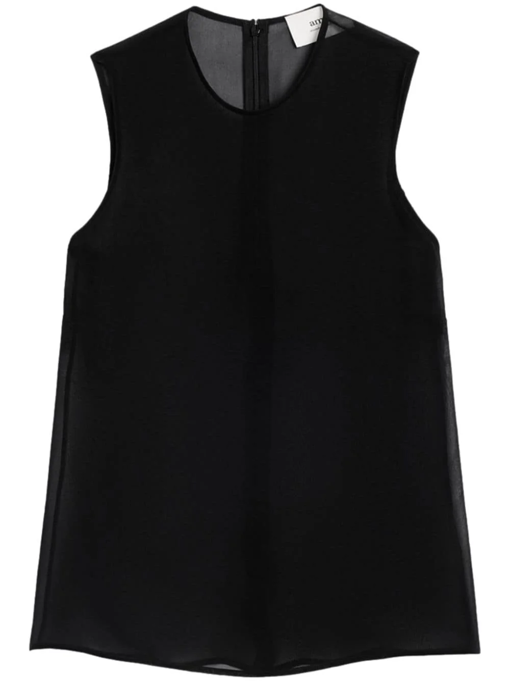 semi-sheer silk top Highlights - Black - Silk - Semi-sheer construction - Round neck - Sleeveless - Straight hem - Concealed rear hook and zip fastening Imported Composition Silk 100%