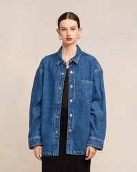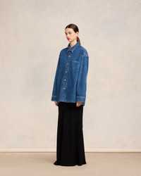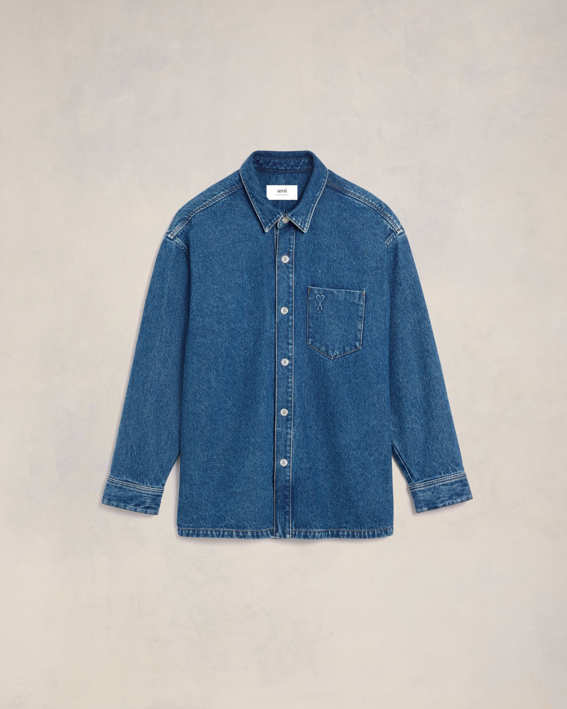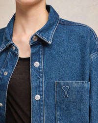 Ami de Coeur oversized overshirt in used indigo denim. Unisex product 79 cm center back length (size S) 84 cm center back length (size M) Embossed Ami de Coeur on chest pocket Ami Paris denim press snap buttons in nickel color Tobacco topstitches Made in Tunisia (with love) REF : UJK253.DE0025.480 SIZE & FIT This style is unisex. For man, take your normal size. For woman, take one size down than your usual size. Man model is 1m85 / 6'1" and is wearing a size M. Woman model is 1m78 / 5'8" and is wearing a size XS. COMPOSITION & CARE GUIDE 100% Cotton Machine wash at 30°C Chlorine prohibited Do not tumble dry Line dry in shade Medium iron Dry clean possible