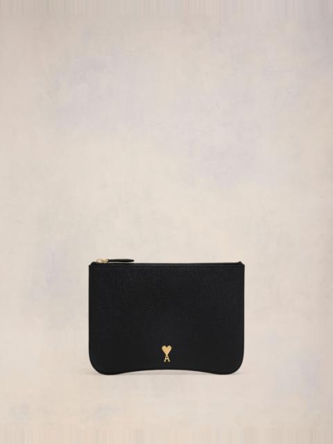 Paris Paris Card pouch in grained leather. Cotton canvas lining Ami de Coeur stud One central compartment with one inside patched pocket Metal hardware in vibrated brass color Size: 25x17.5 cm Made in Morocco (with love) REF : USL025.AL0036.0015 SIZE & FIT Size: 25x17.5 cm COMPOSITION & CARE GUIDE 100% Cow Leather Our leathergoods are made from delicate materials. To keep the original aspect of the leather as long as possible, please avoid contact with abrasive and oily substances. Make sure not to expose them at the direct light for too long and to wipe them with a soft and dry cloth when wet. To avoid deformations, insure to not overload them. Keep them in their dust bag and safe from humidity.