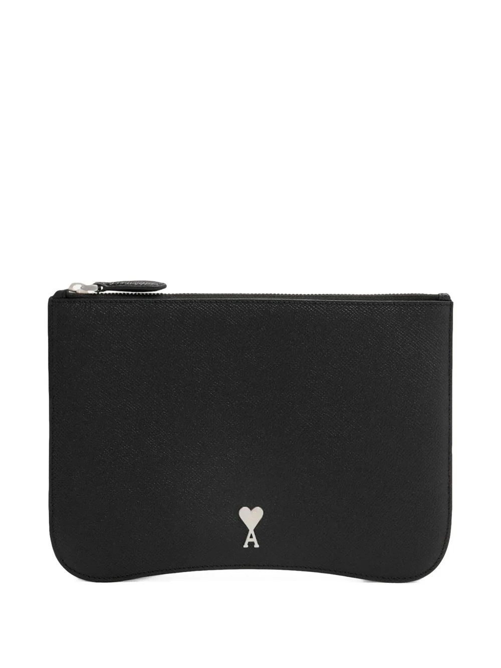 Paris Paris leather pouch Highlights - Black - Calf leather - Grained texture - Silver-tone hardware - Signature ami de coeur monogram motif - Top zip fastening - Main compartment - Internal patch pocket - Cotton lining Made in Italy Composition Calf Leather 100% SIZE & FIT Measurement LENGTH 9.84 in(25 cm) WIDTH 6.88 in(17.5 cm)