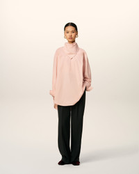 Top in cotton poplin with sewn on bandana collar. Unisex product Oversized fit Bandana collar Buttoned cuffs Mother of pearl buttons Horizontal Ami De Coeur silver plate under back gusset Center back length 87,2 (size XS) Center back length 90,2 (size M) Made in Bulgaria (with love) REF: UTP801.CO0063.680 SIZE & FIT This style is unisex and it's design to be worn oversize. Take your normal size. Man model is 186 cm / 6"1 and is wearing a size M. Woman model is 181 cm / 5"11 and is wearing a size XS. COMPOSITION & CARE GUIDE Main Material : 100% Cotton Chlorine prohibited Do not tumble dry Cool iron Machine wash at 30°c gentle Dry clean gentle