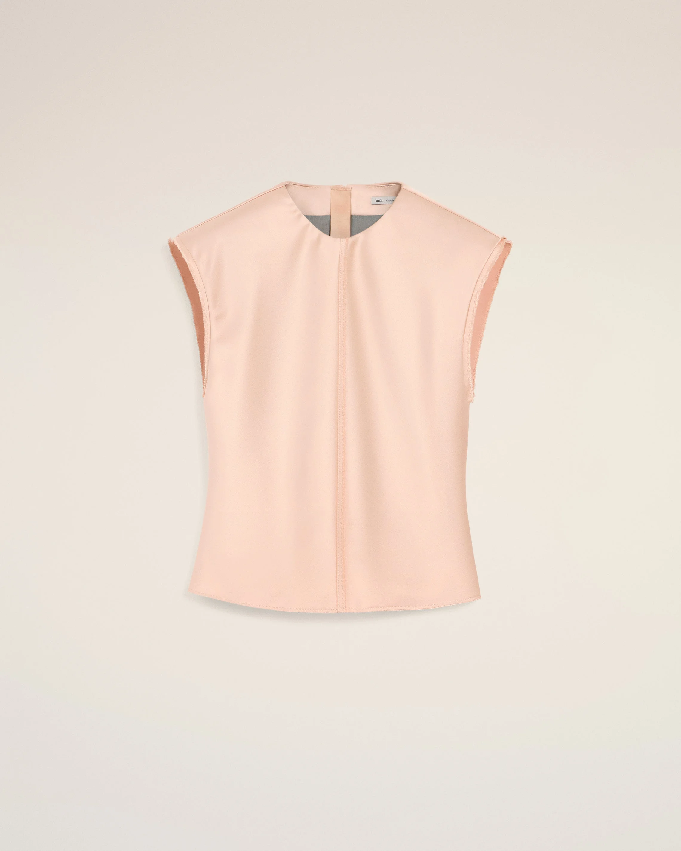 PINK SLEEVELESS RAW EDGE DETAILS TOP