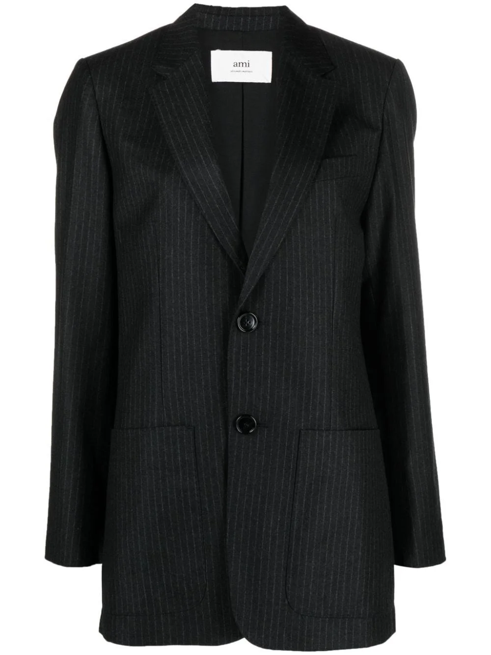 pinstripe-pattern wool blazer Highlights - Dark grey/ivory white - Virgin wool - Pinstripe pattern - Notched lapels - Front button fastening - Long sleeves - Buttoned cuffs - Chest welt pocket - Two side patch pockets - Full lining - Internal jetted pocket - American rear vent - Straight hem Imported Composition Wool 100%