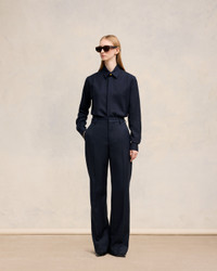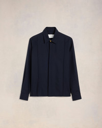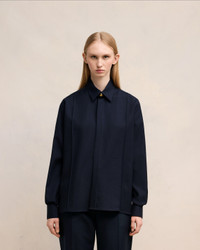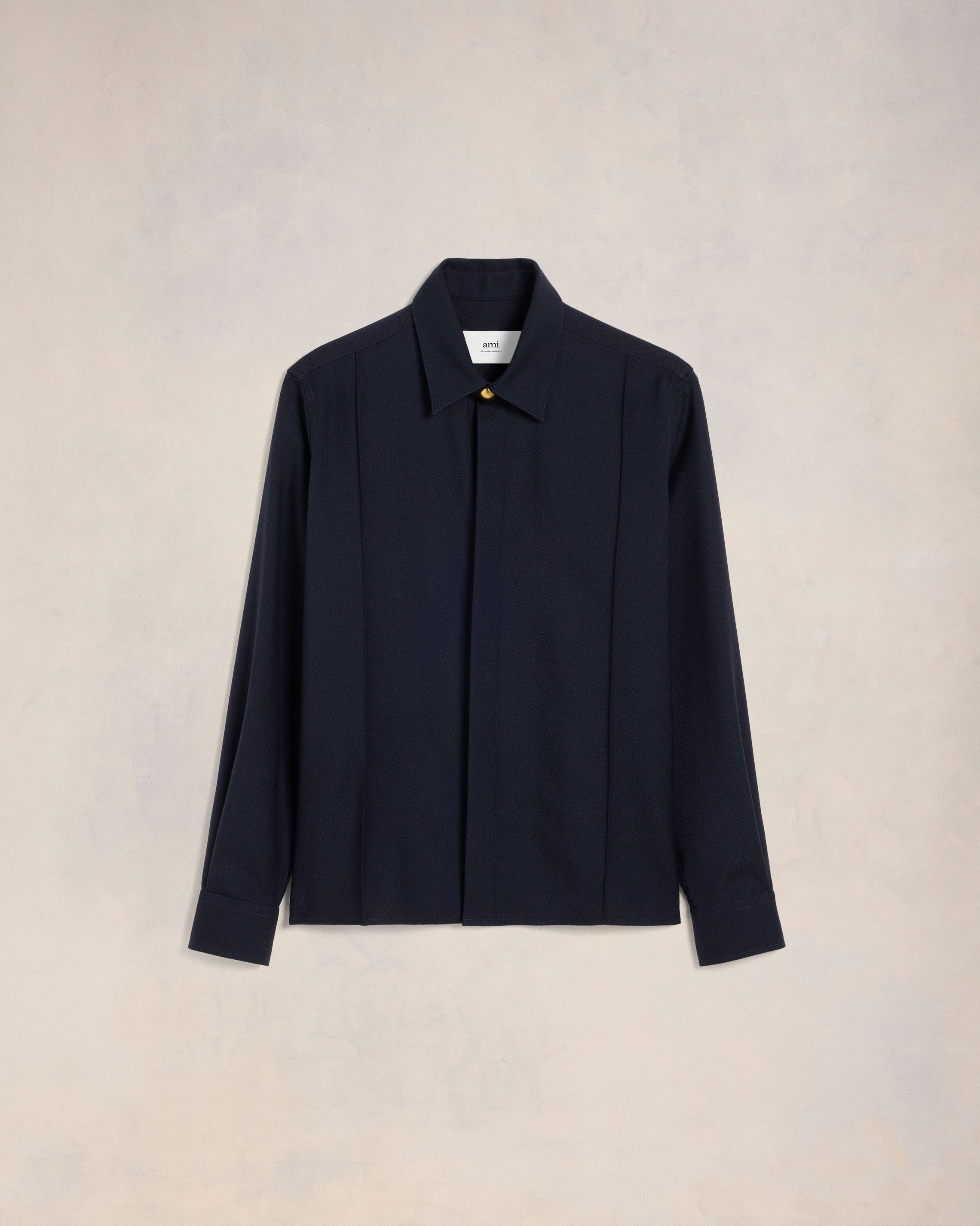 Soft wool gabardine pintuck shirt. Classic fit Unisex product 70 cm center back length (Size XS) 72 cm center back length (Size M) Classic shirt collar Pintucks on front and back Domed metal snap buttons with engraved "ami alexandre mattiussi" on collar stand and cuffs. Hidden front tab Mother-of-pearl buttons Made in Portugal (with love) REF : USH012.WV0026.4011 SIZE & FIT This style is unisex. For man, take your normal size. For woman, take one size down than your usual size. Man model is 1m83 / 6'0" and is wearing a size M. Woman model is 1m78 / 5'10" and is wearing a size XS. COMPOSITION & CARE GUIDE 100% Virgin Wool Chlorine prohibited Do not tumble dry Dry clean gentle Cool iron Do not wash