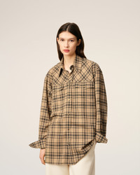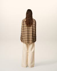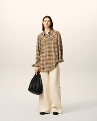Long sleeves shirt in checked wool twill. Unisex product Relaxed fit Checked Classic collar 2 front pockets Western snap buttons on front and cuffs Branded horizontal silver metal placket Center back length: 83 cm (size XS) Center back length: 84 cm (size M) Made in Bulgaria (with love) REF: USH777.WO0011.288 SIZE & FIT This style is unisex. For man, take your normal size. For woman, take one size down than your usual size. Man model is 186 cm / 6"1 and is wearing a size M. Woman model is 181 cm / 5"11 and is wearing a size XS. COMPOSITION & CARE GUIDE Main Material : 50% Wool 50% Polyester Chlorine prohibited Do not tumble dry Dry clean gentle Cool iron Machine wash at 30°c gentle