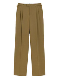tab-detail wide-leg trousers Highlights - Olive green - Front pleats - Adjustable side tabs - Metal buckle fastening - Buttoned pockets Imported Composition Lining: Polyester 100% Outer: Wool 100% Washing instructions Read Manufacturer Guidelines