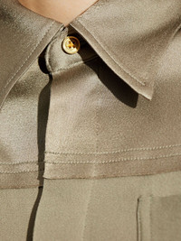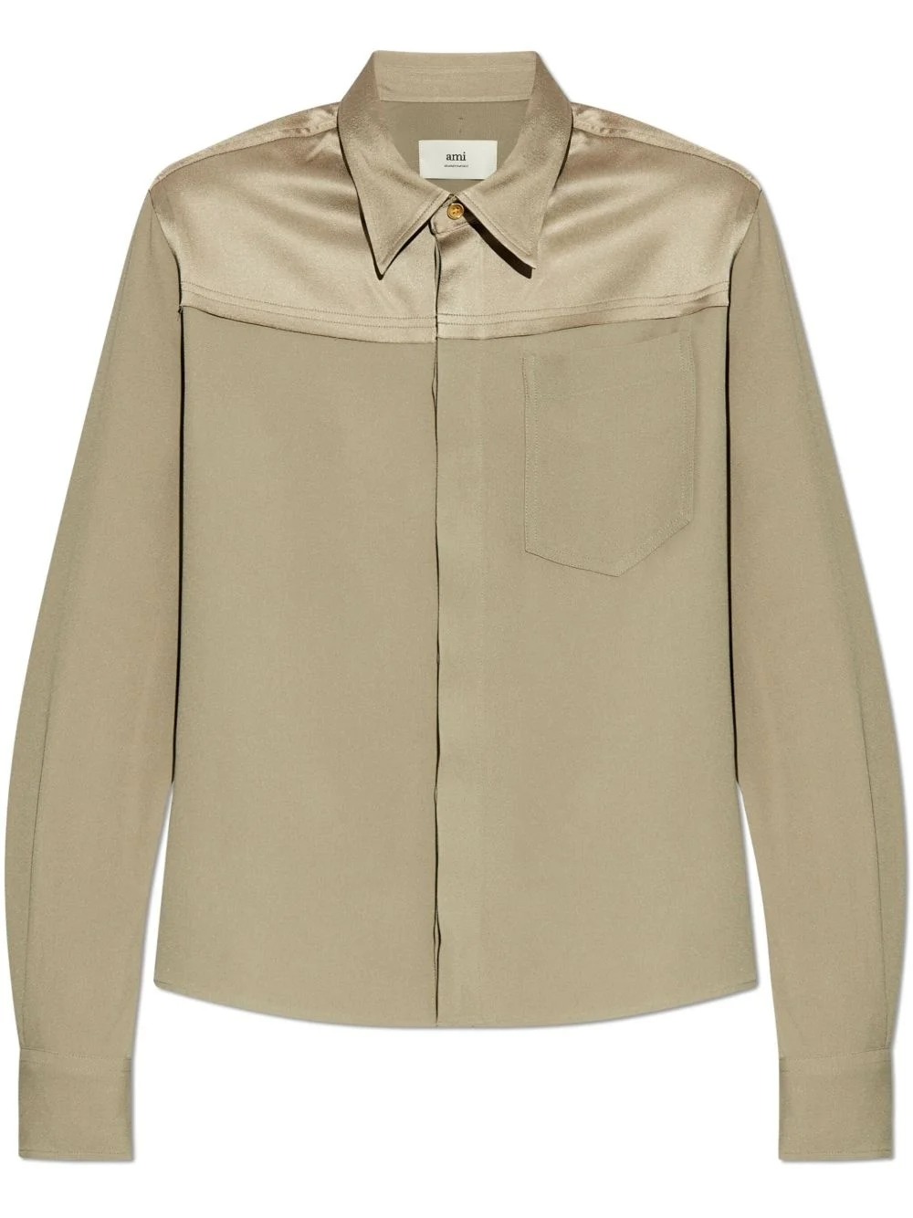 pointed-collar shirt Highlights - Beige - Concealed front button fastening - Chest patch pocket - Buttoned cuffs - Rear curved hem Imported Composition Acetate 71%, Viscose 29%