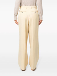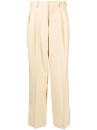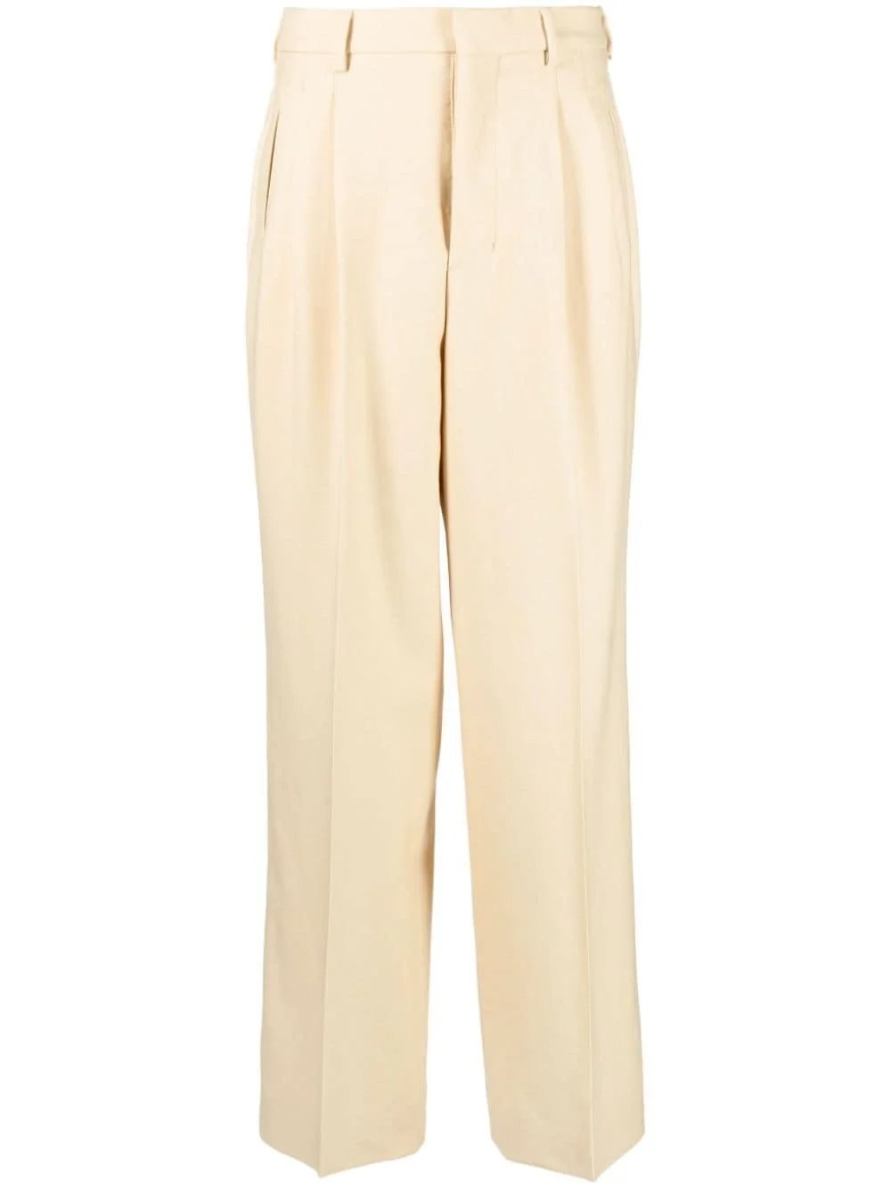 wide-leg tailored trousers Highlights - Light yellow - Virgin wool - Pleat detailing - Straight leg - Mid-rise - Belt loops - Concealed front fastening - Two side inset pockets - Two rear button-fastening jetted pockets Imported Composition Outer: Virgin Wool 100% Lining: Polyester 100%