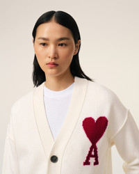 Cardigan in felted merino wool. Unisex product Jersey stitch Intarsia knitted red Ami de Coeur on the chest Inside out seams 62 cm center back length (size M) 56 cm center back length (size XS) Horn buttons Made in Portugal (with love) REF : BFUKC006.018.154 SIZE & FIT This style is unisex. For man, take your normal size. For woman, take one size down than your usual size. Man model is 1m82 / 6'0" and is wearing a size M. Woman model is 1m75 / 5'9" and is wearing a size XS. COMPOSITION & CARE GUIDE 100% Wool Hand wash low temperature Chlorine prohibited Do not tumble dry Dry flat Cool iron Dry clean possible