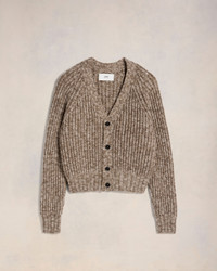Cardigan in chunky wool chine. Unisex product English ribs "ami alexandre mattiussi" leather patch on the back under collar 59 cm center back length (size M) 51 cm center back length (size XS) Horn buttons Made in Italy (with love) REF : UKC056.KN0051.2008 SIZE & FIT This style is unisex and it's design to be worn oversize. Take your normal size. Man model is 1m87 / 6'2" and is wearing a size M. Woman model is 1m79 / 5'10" and is wearing a size XS. COMPOSITION & CARE GUIDE 100% Wool Do not wash Chlorine prohibited Do not tumble dry Dry flat Cool iron Dry clean possible