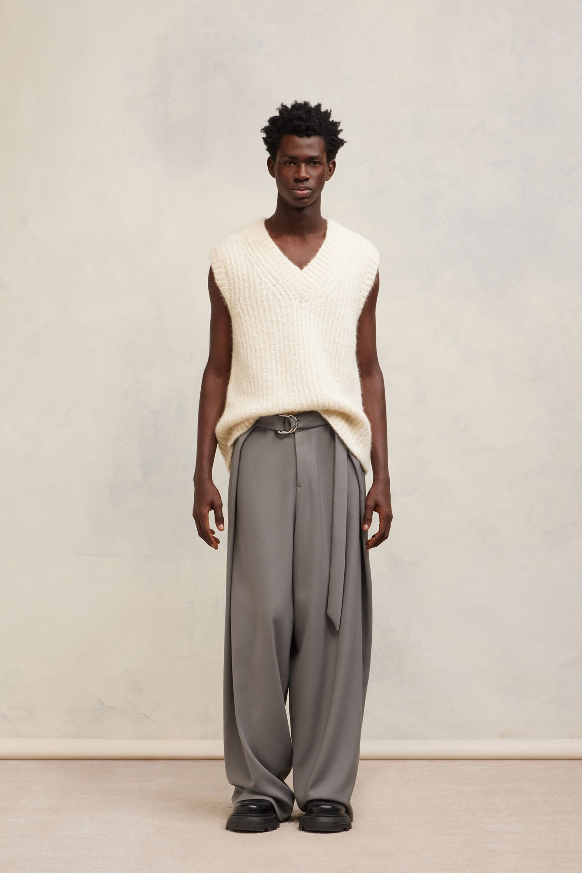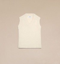 Ami Paris' Parisian nonchalance is the key ingredient for authentic and cool style. This vest is crafted from a decadent wool blend and is complete with a V-neck. Product Details - Material: 74% alpaca wool, 22% wool, 4% polyamide - Care instructions: dry clean - Made in Italy - Designer color name: Ivory - Item number: P00838881 Size & Fit - True to size - Designed for a loose fit - Mid-weight material - Falls below the hip - The model seen in the picture is 178cm-5'10" and wearing a size XS