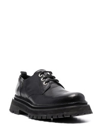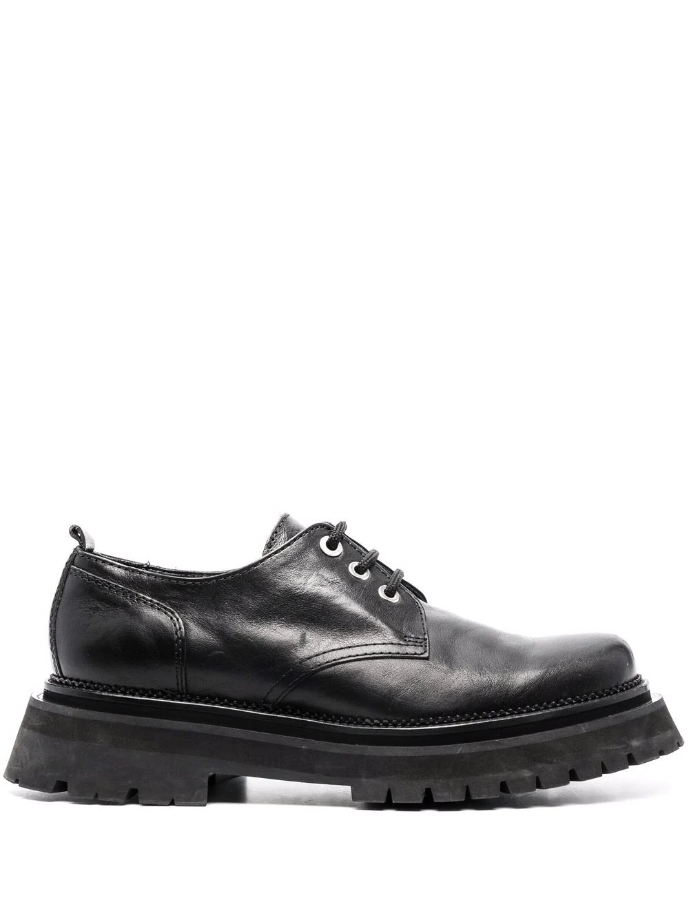 Black leather ridged-sole Derby shoes from AMI Paris featuring round toe, front lace-up fastening, branded insole, pull-tab at the heel and ridged rubber sole. Highlights - Black - Leather - Round toe - Front lace-up fastening - Branded insole - Pull-tab at the heel - Ridged rubber sole Imported Composition lining: Leather 100% sole: Rubber 100% outer: Leather 100% Product measurements for size: 44 (FR) Heel: 6 cm (2.4 in) Platform: 4 cm (1.6 in)