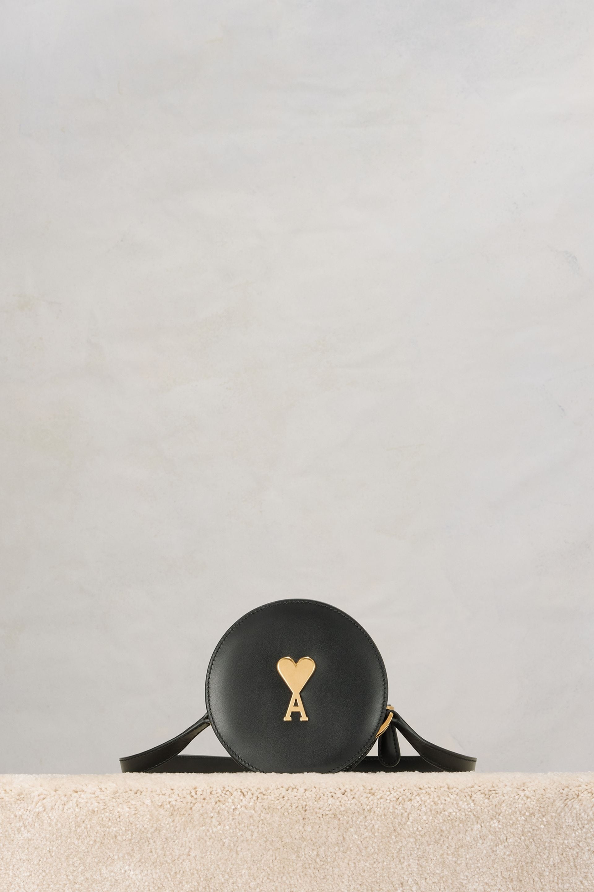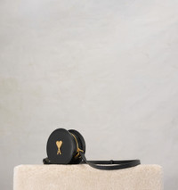 Product Description logo-plaque round shoulder bag from AMI Paris featuring black, leather, grained texture, gold-tone logo plaque, leather strap, top zip fastening and main compartment. Round Paris Paris Bag in smooth leather. - Semi-vegetal tanning. Natural patina of leather - Suede lambskin lining - Ami de Cœur rivet - One central zipped compartment - Adjustable leather strap, crossbody carry - Metal hardware in vibrated brass color - Size: 13x13x4 cm - Made in Morocco (with love) REF ULL009.801001 Size & Fit One size. Materials & Care Instructions 100% Cow Leather