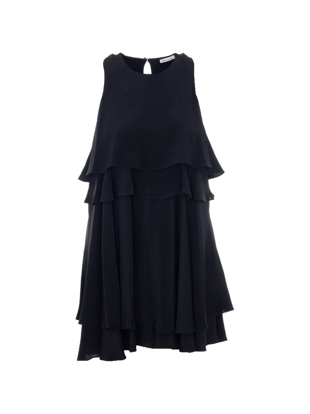 ruffled round-neck mini dress Highlights - Black - Round neck - Sleeveless - Ruffles Imported Composition Acetate 76%, Silk 24% Washing instructions Read Manufacturer Guidelines