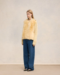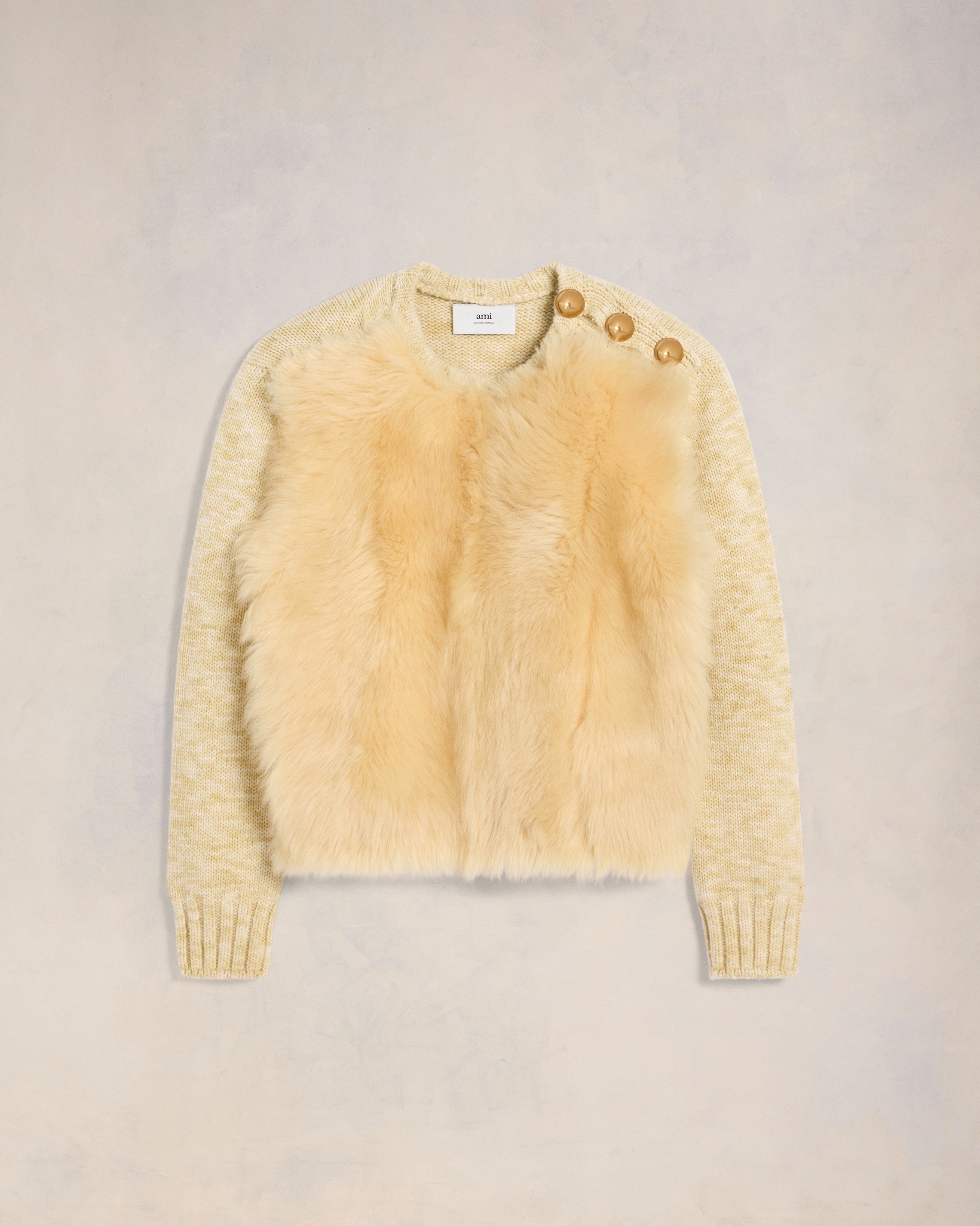 Sweater in chunky wool chine. Jersey stitch Front body with long hair lamb shearling 58 cm center back length (size M) Shoulder opening with domed metal shank buttons engraved Made in Italy (with love) REF : UKS056.KN0051.2009 SIZE & FIT This style is unisex. For man, take your normal size. For woman, take one size down than your usual size. Man model is 1m82 / 6'0" and is wearing a size M. Woman model is 1m78 / 5'10" and is wearing a size XS. COMPOSITION & CARE GUIDE 100% Wool Do not wash Chlorine prohibited Do not tumble dry Dry flat Do not iron Dry clean petroleum solvent only on a gentle process Profesional dry cleaning by a specialist in luxury